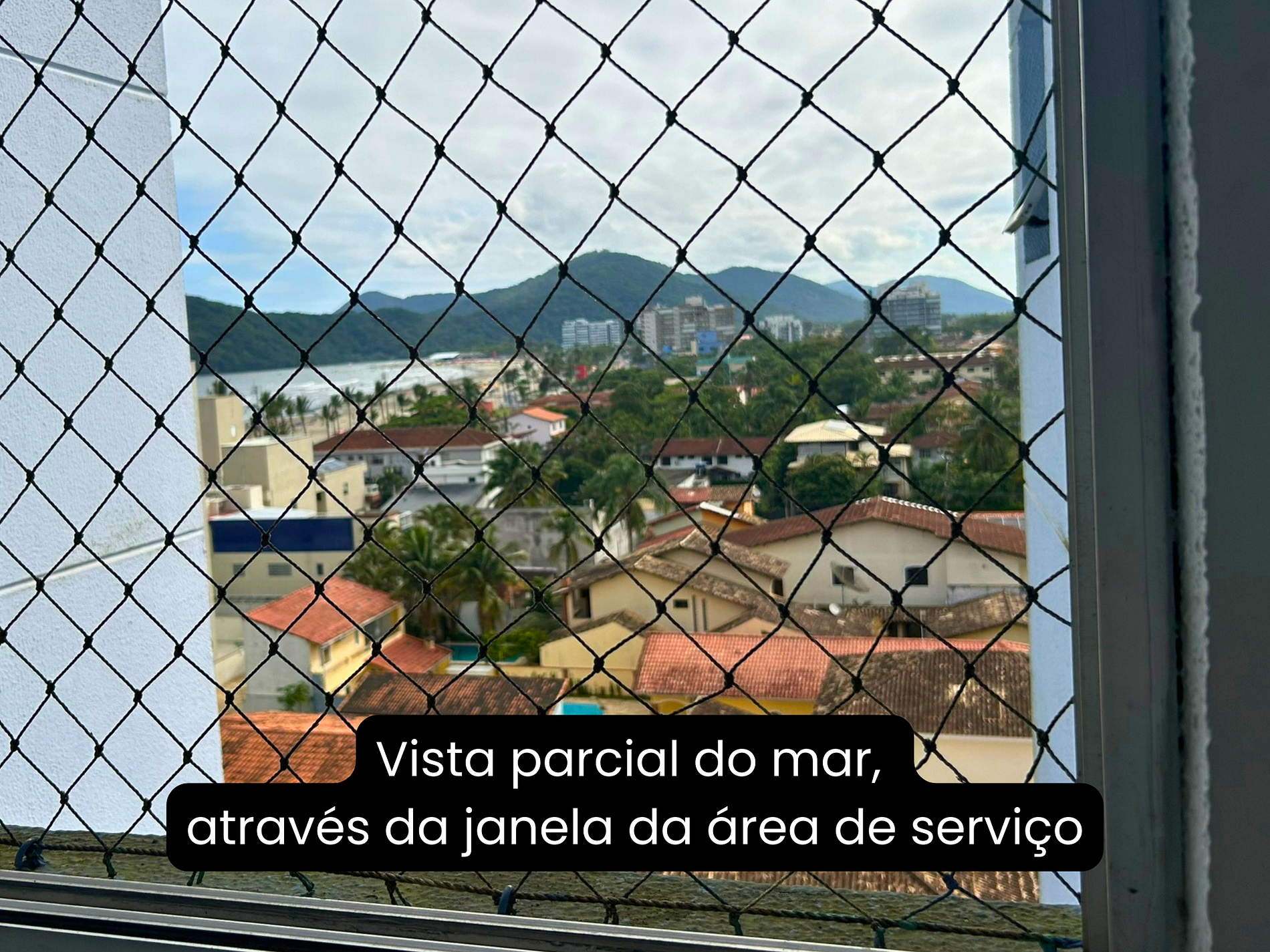 Apt on the 6th floor for up to 8. View of the Serra do Mar (coastal mountain range). A/C in bedrooms and living room.