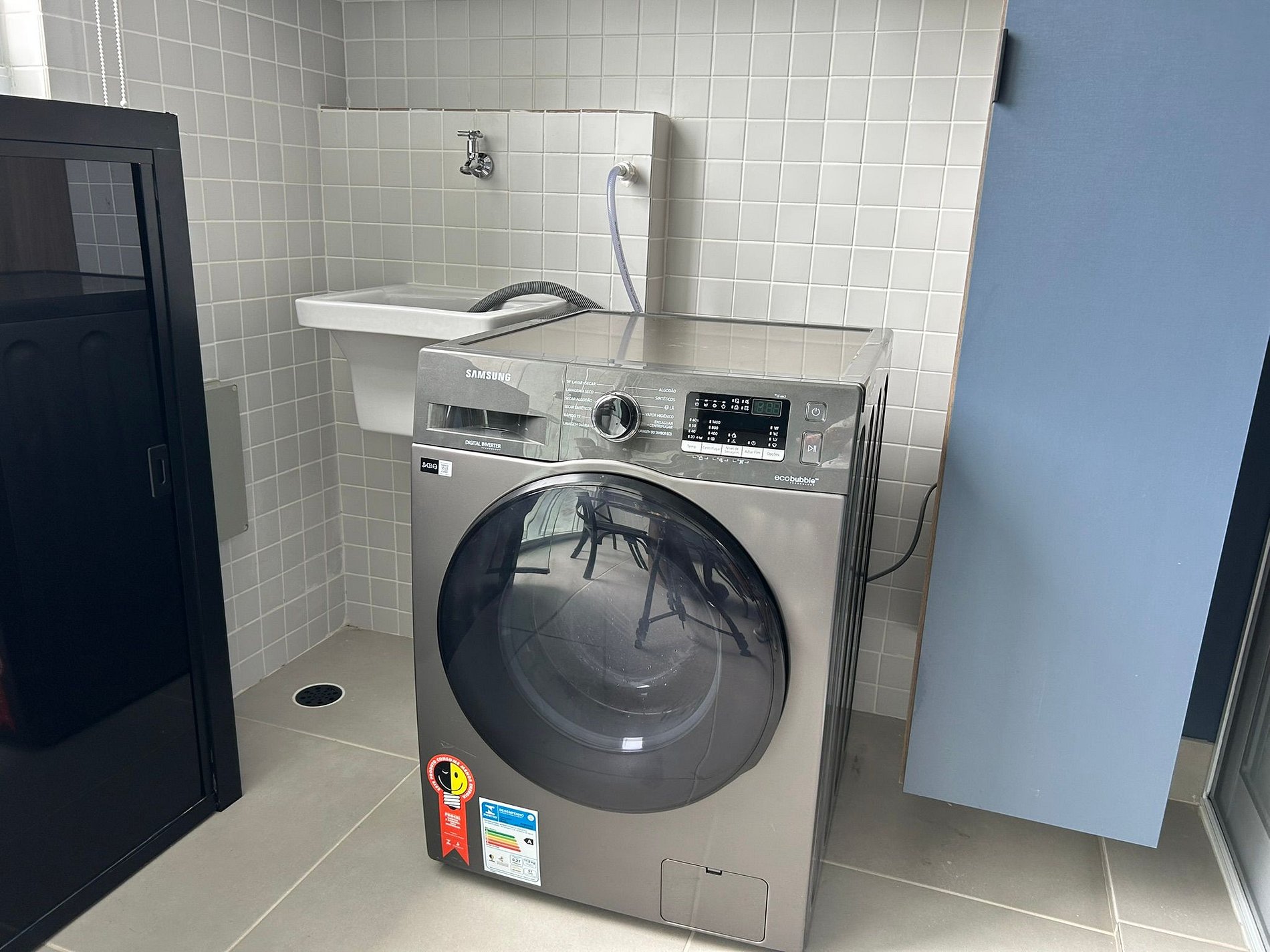 Washer-dryer machine and drying rack.