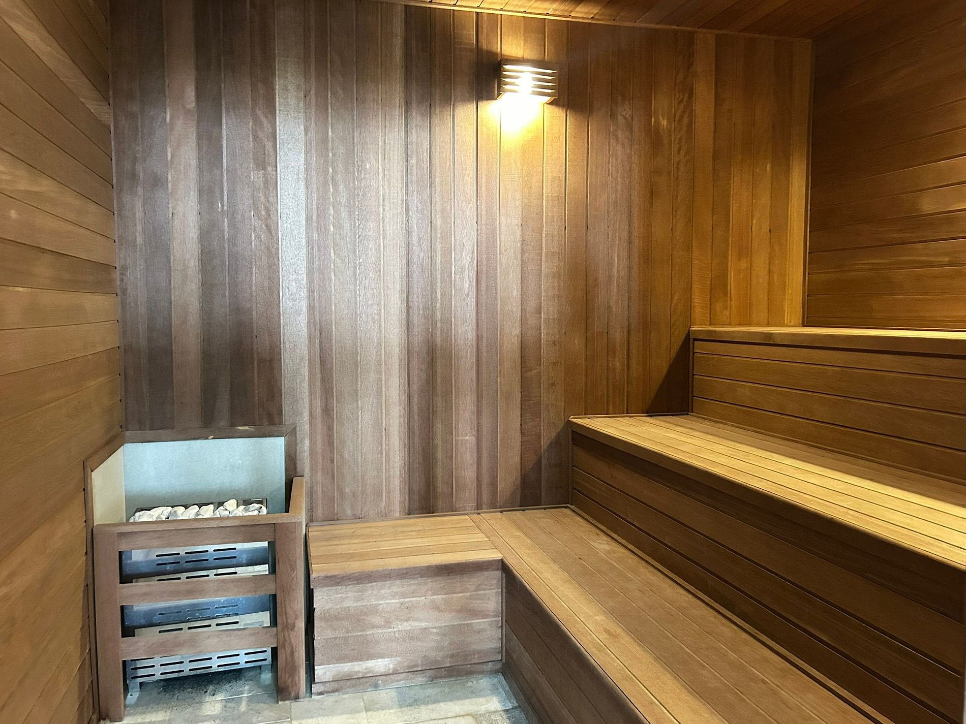The leisure area includes an ocean-view swimming pool, a heated pool, sauna, gym, game room, kids’ playroom, and a children’s playground.