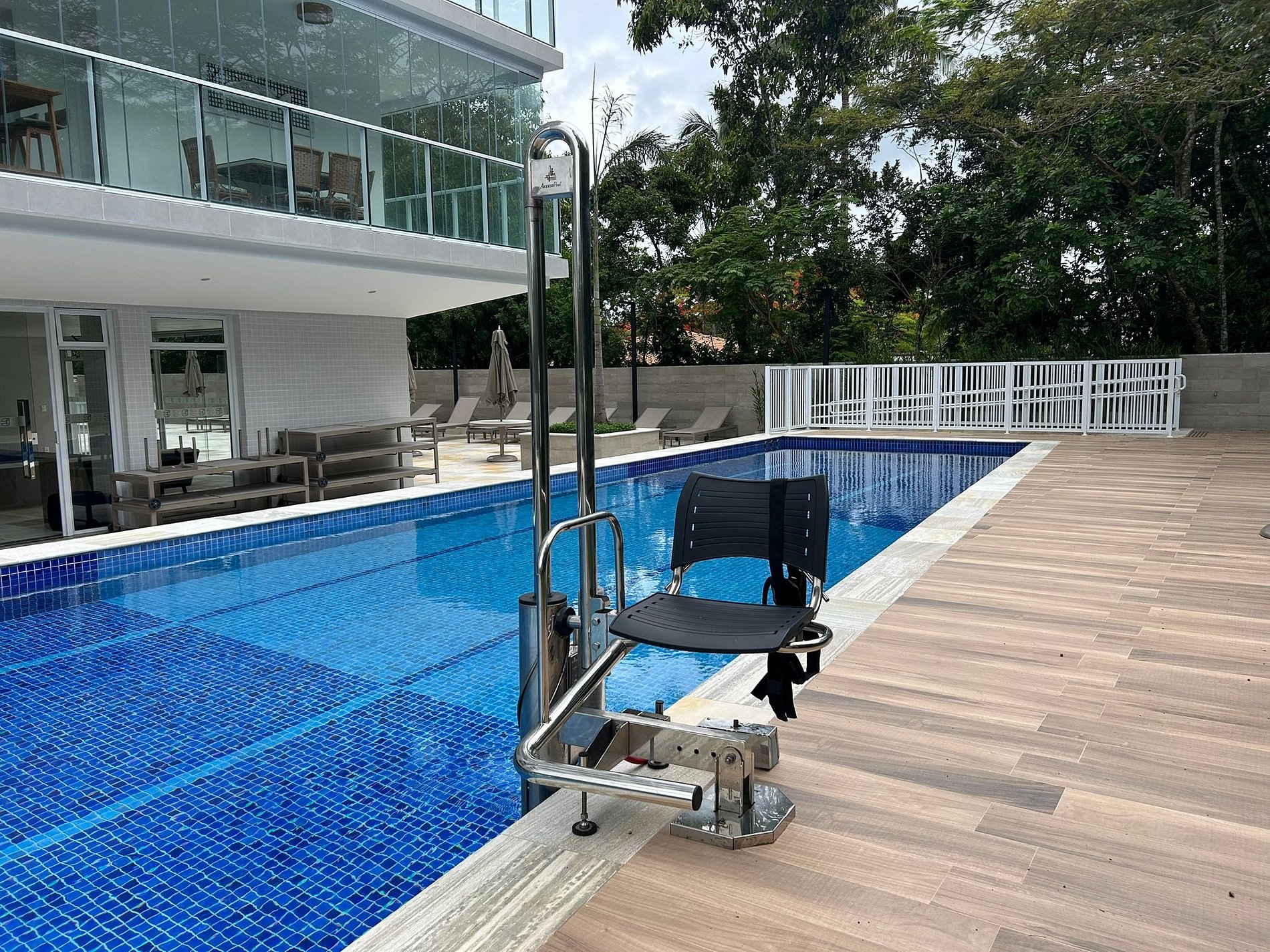 - Outdoor swimming pool and an indoor heated pool. Both are equipped with a transfer chair for accessibility, allowing guests with reduced mobility to safely use the pool.
