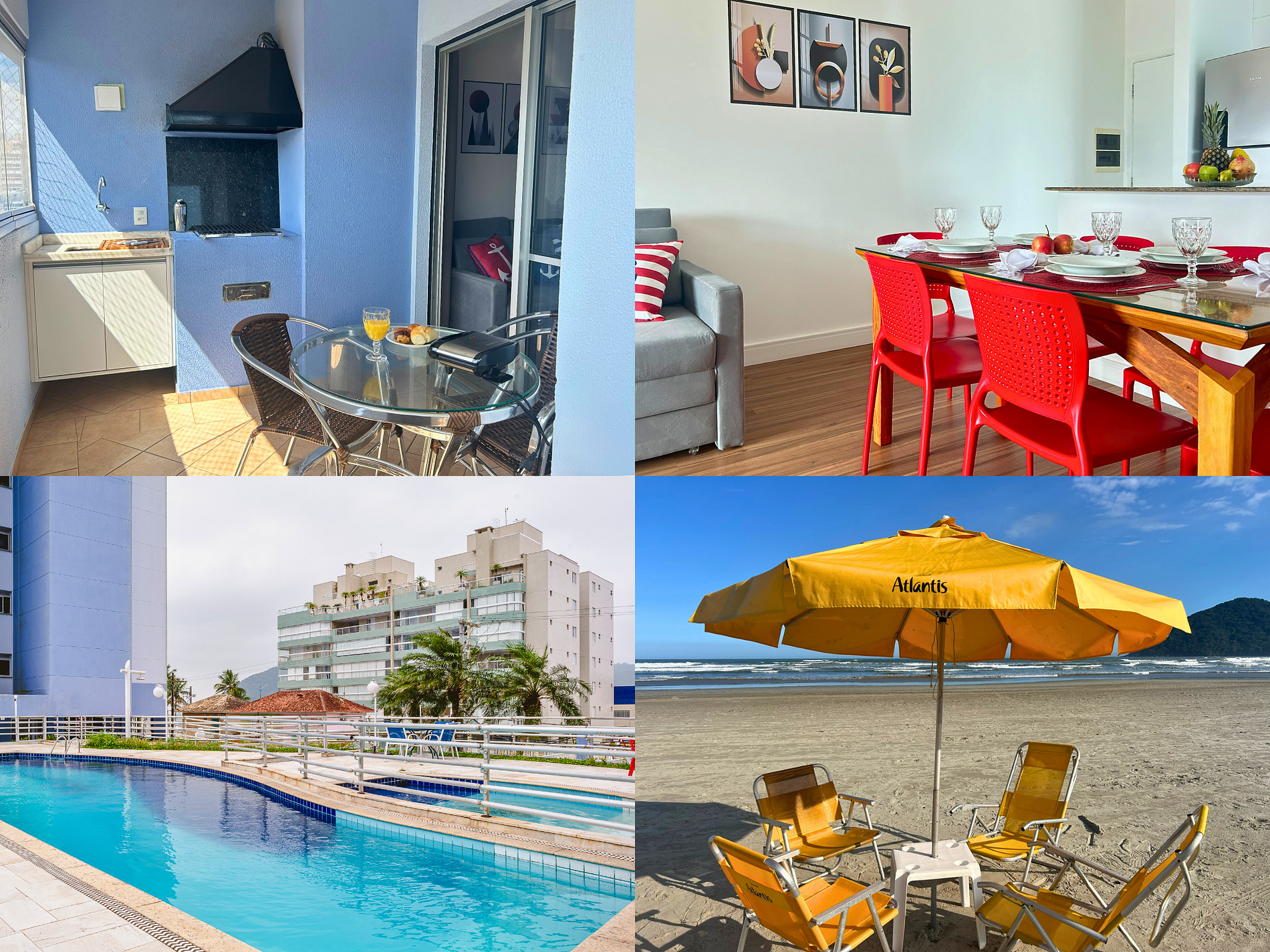 Our apartments are located in a residential condominium facing the sea. Our condominium has a 24-hour doorman, beach service with 1 umbrella and 4 chairs per apartment, and also offers complimentary ice.