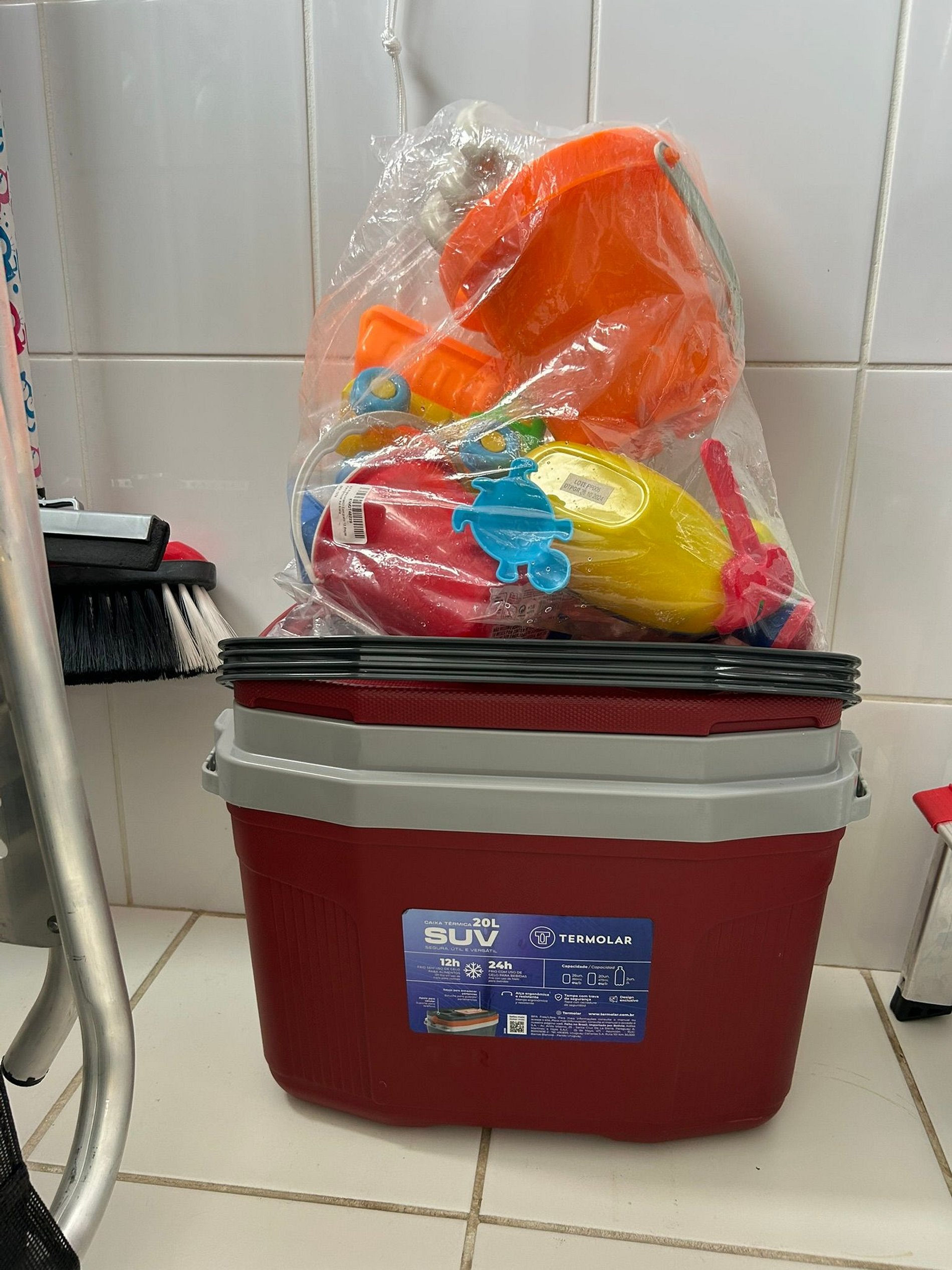 Disponible todos los días de 09:00 a 18:00, con 1 sombrilla y 4 sillas por apartamento. Normalmente se monta frente al edificio. En algunos casos, puede ser necesario solicitarlo en la portería.