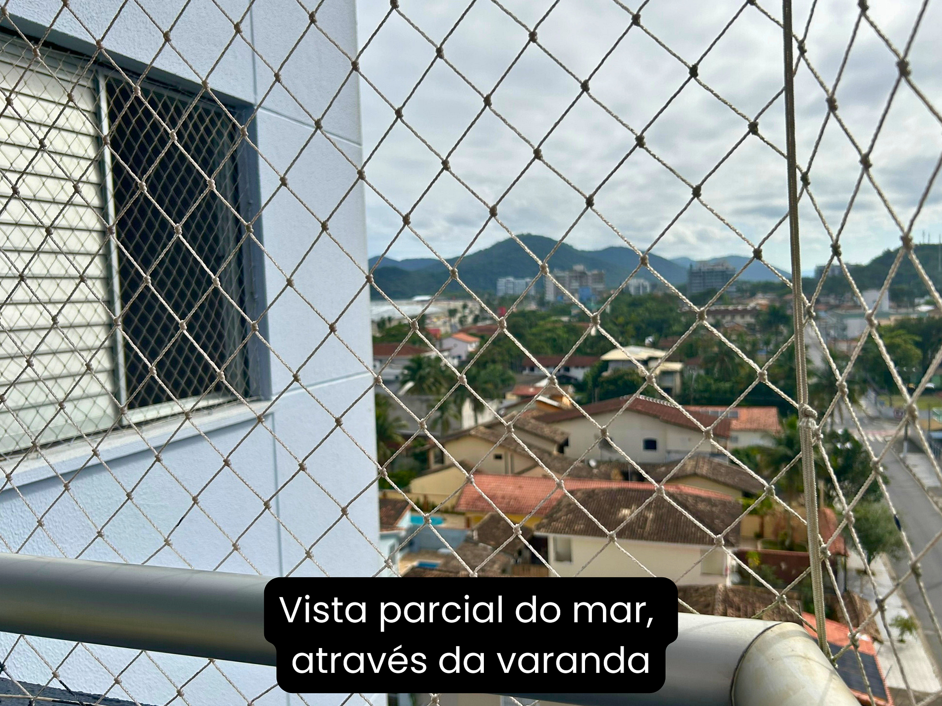 Apto en 6.º piso para hasta 8 personas. Vista a la Serra do Mar, aire acondicionado en dormitorios y sala de estar.