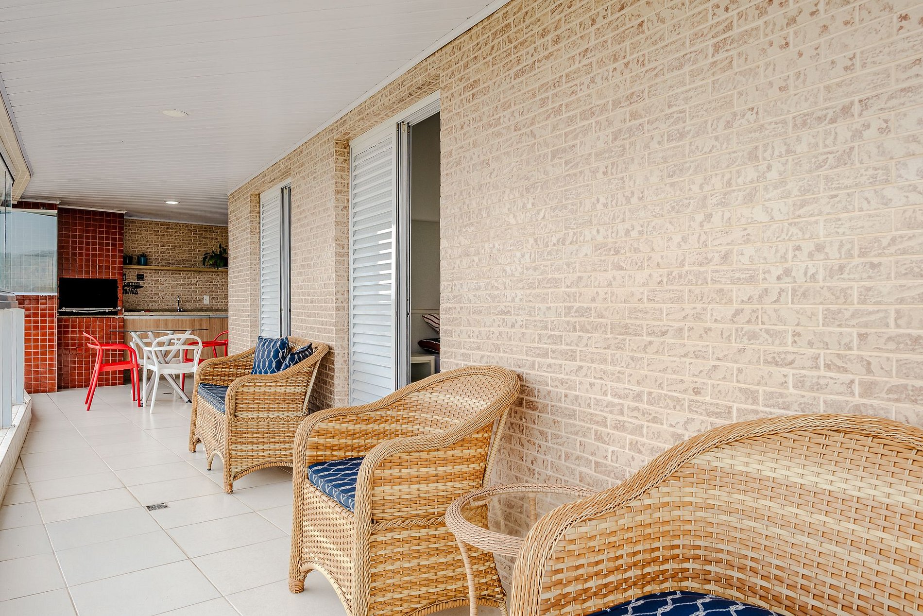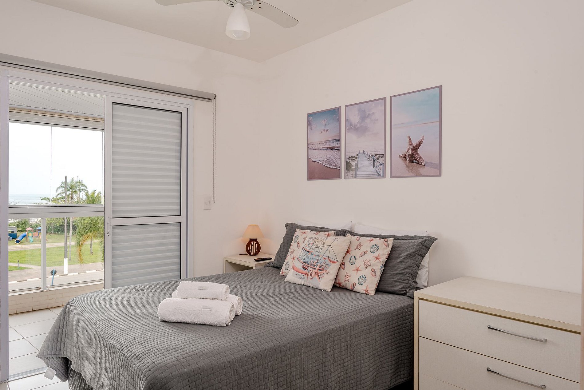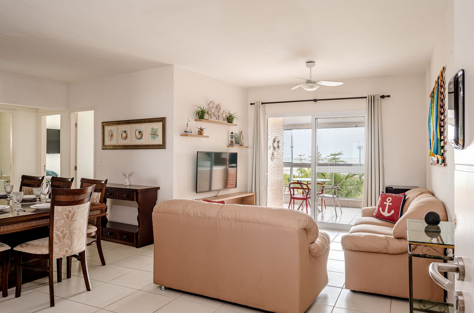 Nuestro apartamento tiene 3 habitaciones, 1 suite, sala de estar y cocina, con 110m². Está frente al mar y tiene vista al mar. Balcón frente al mar todo cerrado con vidrio y barbacoa.