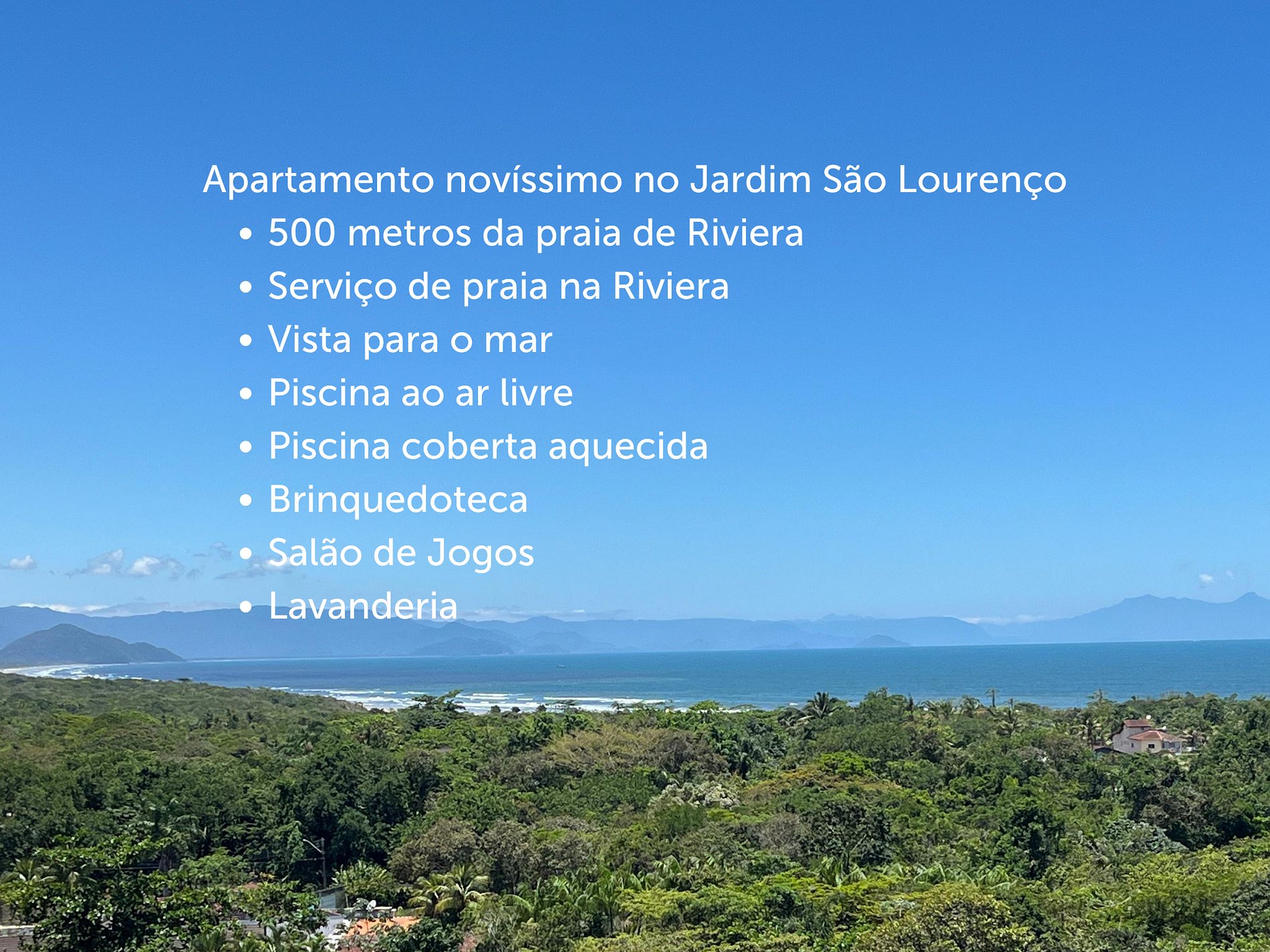 Apartamento nuevo en el Condominio Canoas, en Bertioga, en Jardim São Lourenço, al lado de la Riviera. A 7 minutos a pie de la playa (500 m).