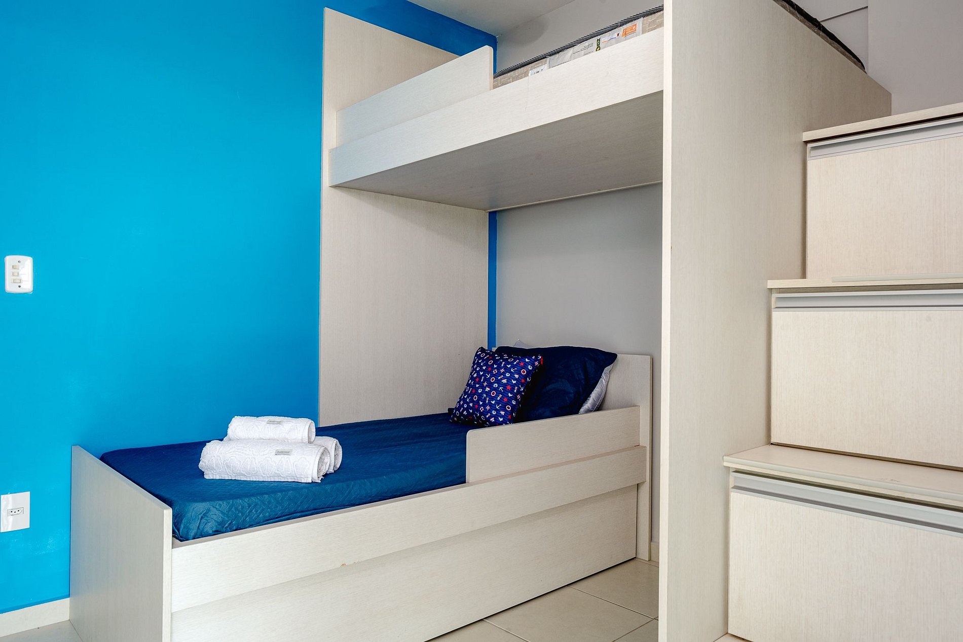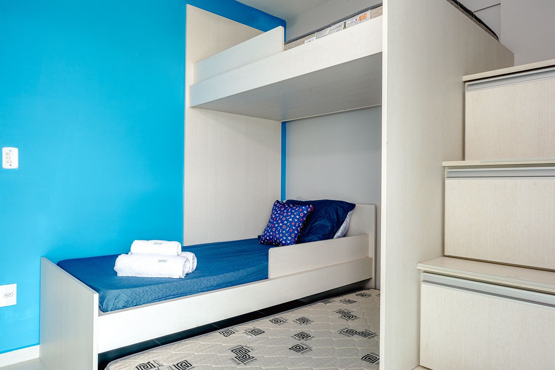 Acomoda hasta 3 personas, con 1 litera y 1 cama auxiliar. Aire acondicionado y ventilador de techo.