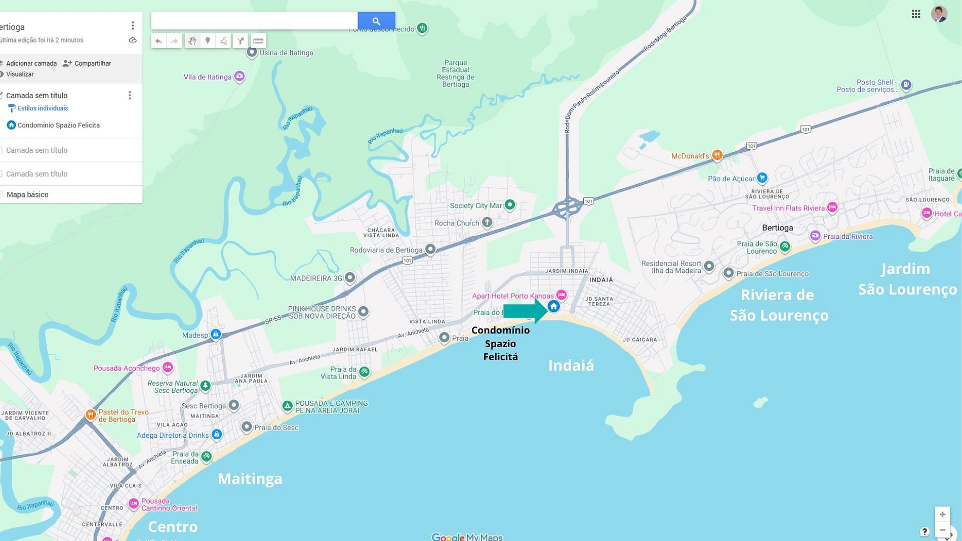 Hasta el centro de Bertioga son unos 20 minutos (10 km). Cerca del canal de Bertioga se puede encontrar: