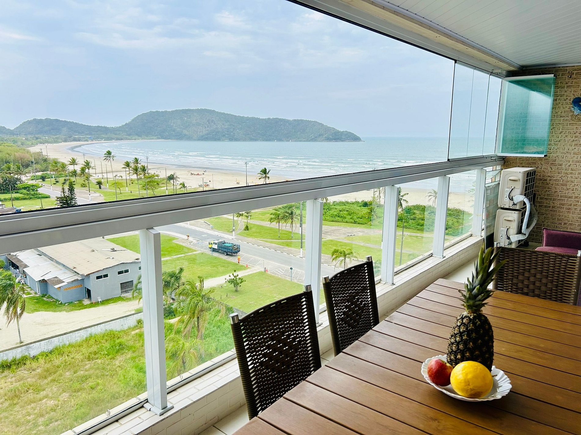 Nuestro apartamento dispone de 2 dormitorios (1 suite), salón y cocina, totalizando 75m². Condominio frente al mar y con hermosas vistas al mar. Balcón cerrado con vidriera y barbacoa.