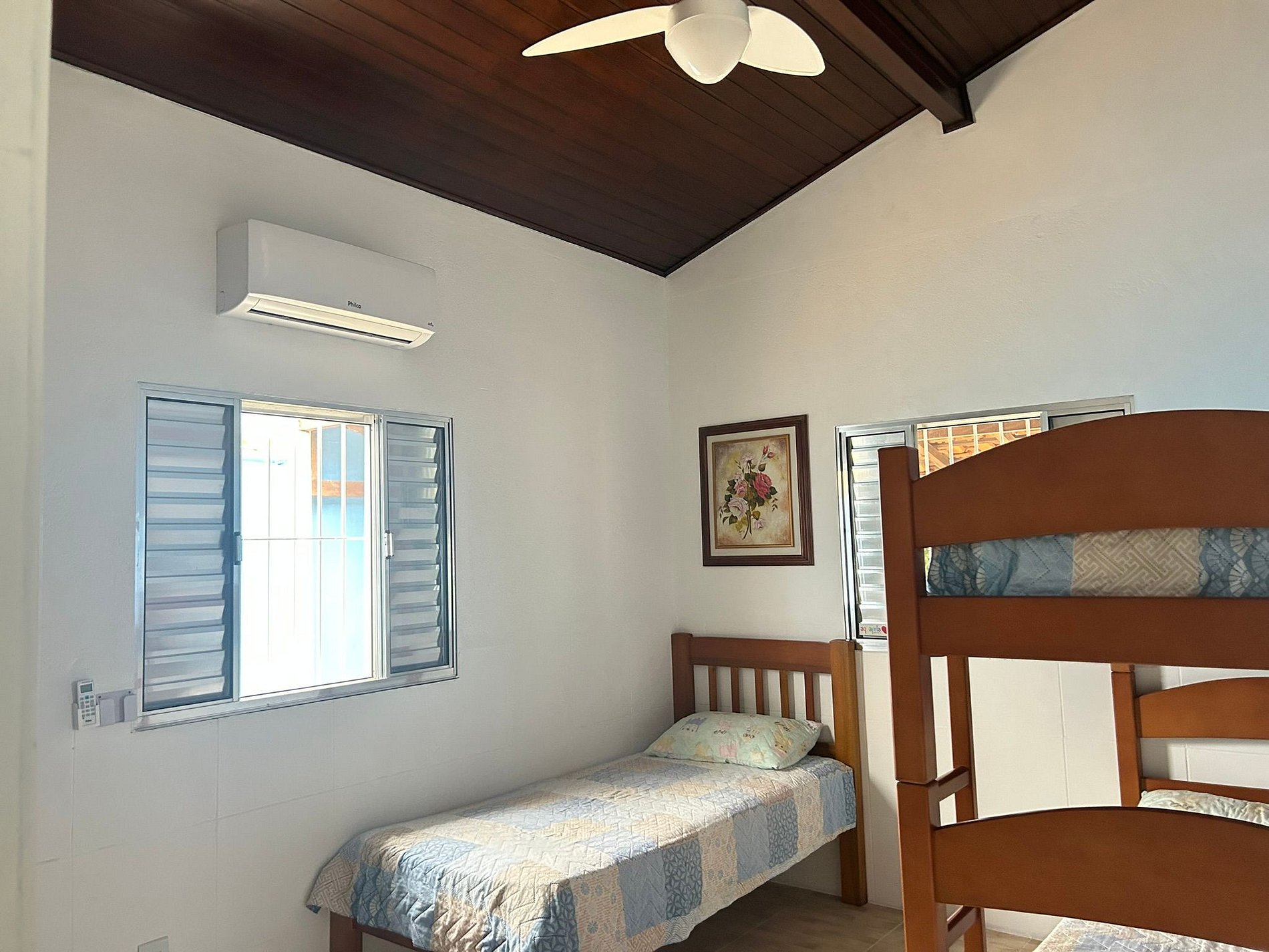 Ideal para hasta 3 huéspedes. Cuenta con una litera y una cama individual. También dispone de aire acondicionado y ventilador de techo.