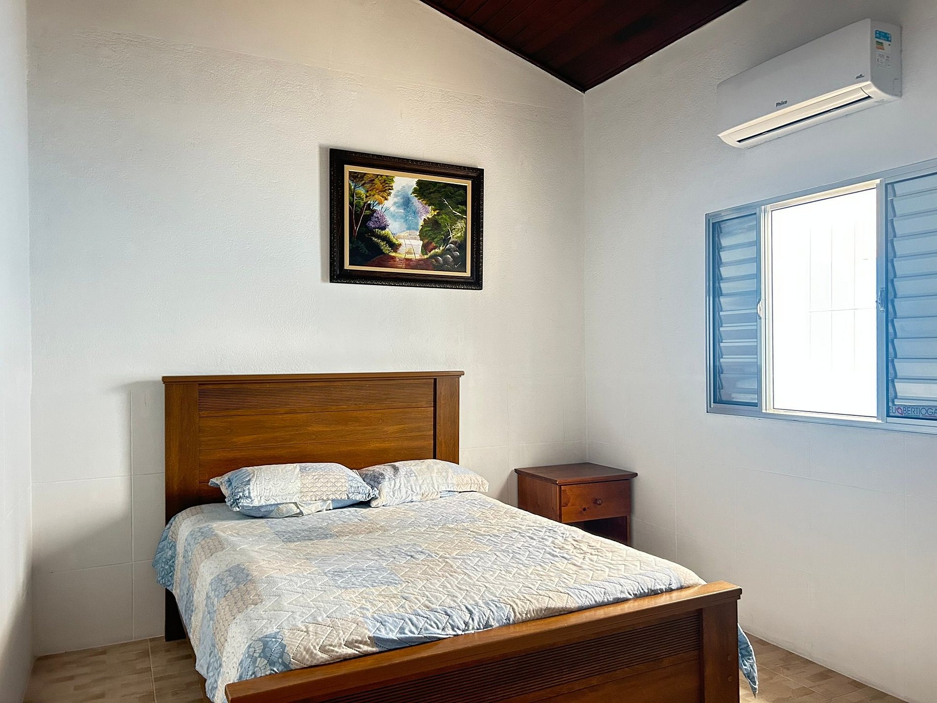 Acomoda cómodamente a 2 personas, con cama doble estándar. Ambiente climatizado con aire acondicionado y ventilador de techo.