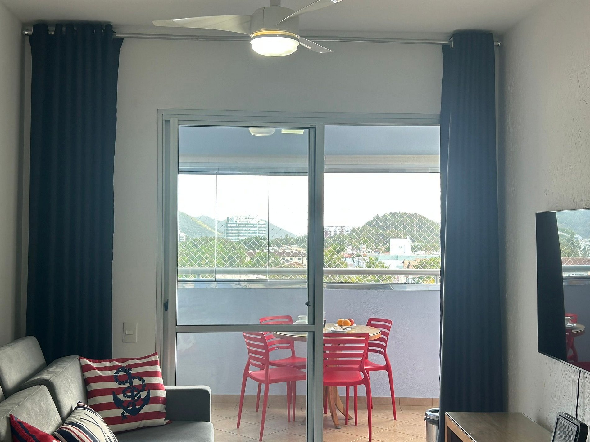 Apê no 4º andar para até 8 pessoas. Vista para o Mar. Tela de proteção na varanda e janelas.