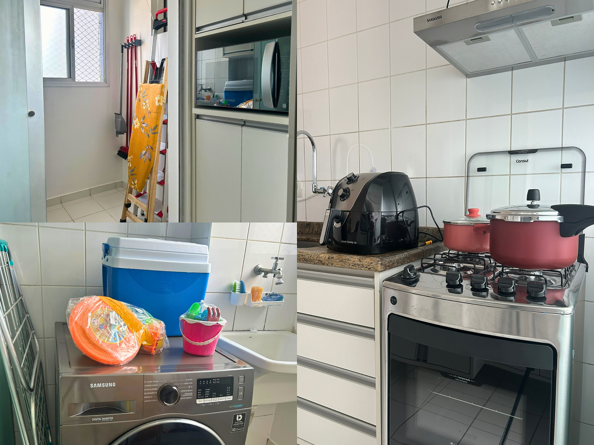 ÁREA DE SERVIÇO Lavadora de roupas, ferro de passar e varal disponíveis para sua conveniência.